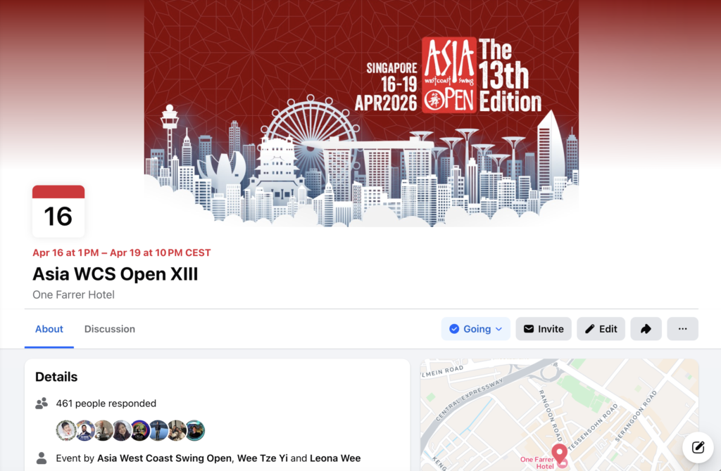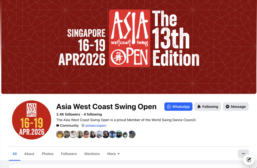 Be part of the 13th Asia West Coast Swing Open, the largest and first WSDC points event in Asia! Our line-up is insanely good, with top International Pros from around the World coming to Singapore to teach, dance and perform! Come dance with fellow WCS fanatics from the region and all around the World.