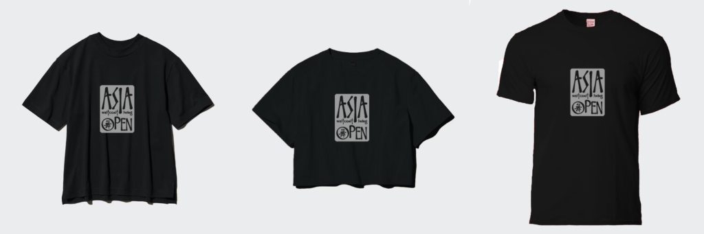 In addition, we’ll have our classic, minimalist T-shirts featuring just the Asia Open logo on the front, but elevated with ✨silver glitter ink ✨.